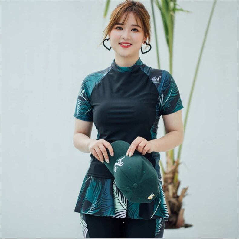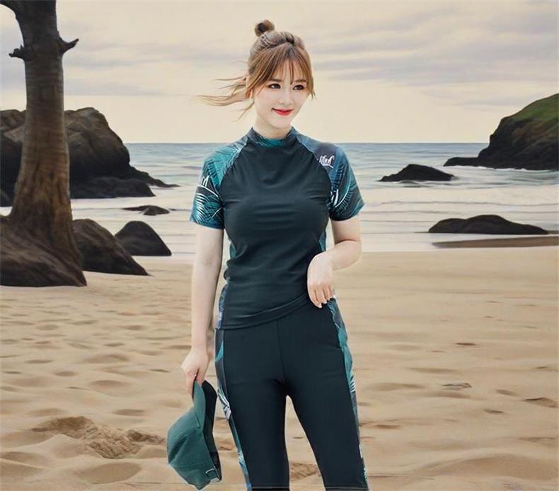 【魅力的な上下セット】春夏のリゾートにぴったりなレディースラッシュガード水着です。体型カバーを考慮したデザインで、どんな体型の方でも自信を持って着こなせます。ぽっちゃり型の方にも最適で、快適さとスタイルを両立させたアイテムです!