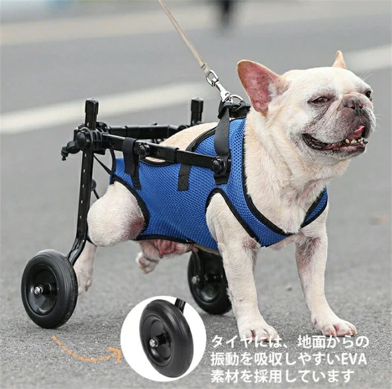 【愛犬のための歩行補助具】この犬用車椅子は、歩くことに不安を感じる愛犬のために設計された、軽量かつサイズ調整可能なペット歩行器です!2輪のデザインにより、安定した歩行をサポートし、愛犬のリハビリを助けます。